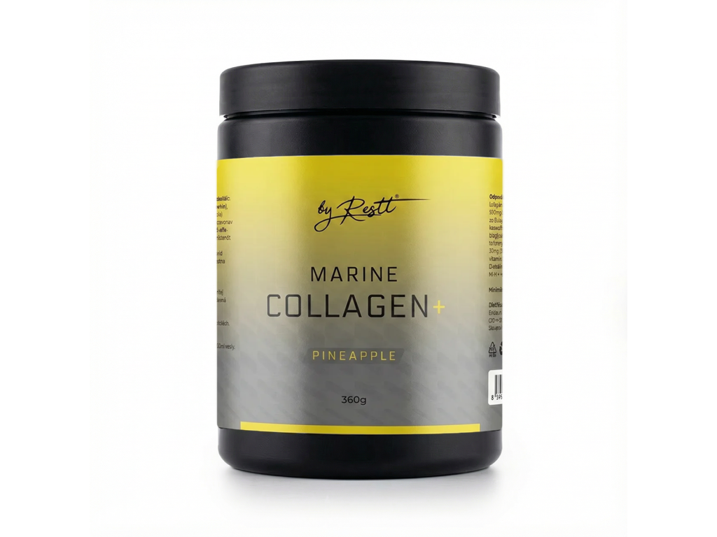 Morský kolagén + ananás – prášok 360 g – morský kolagén 5 000 mg + horčík 200 mg + MSM 500 mg + kyselina hyalurónová 75 mg + Boswellia serrata 400 mg + komplex vitamínov B, C, E, zinok a biotín s príchuťou ananásu. Komplexná formula pre kĺby, pokožku, vlasy, nechty a regeneráciu – ideálna na miešanie do vody alebo šejkra.